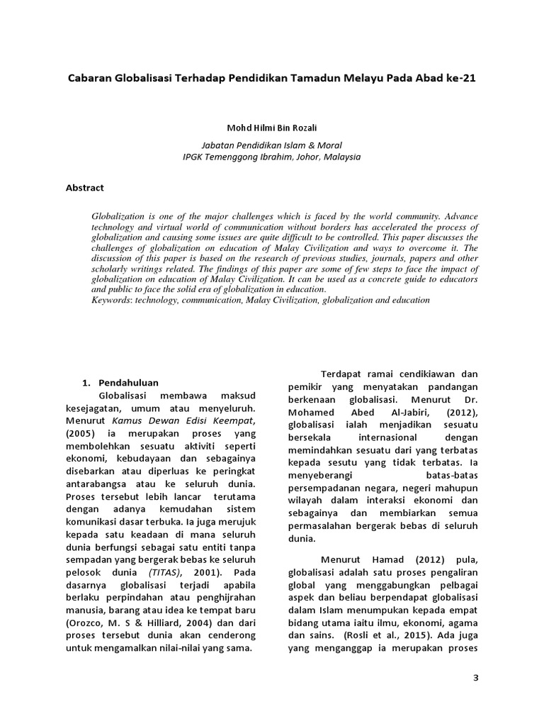 Cabaran Globalisasi Dalam Pendidikan Tamadun Melayu Pdf